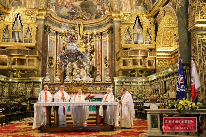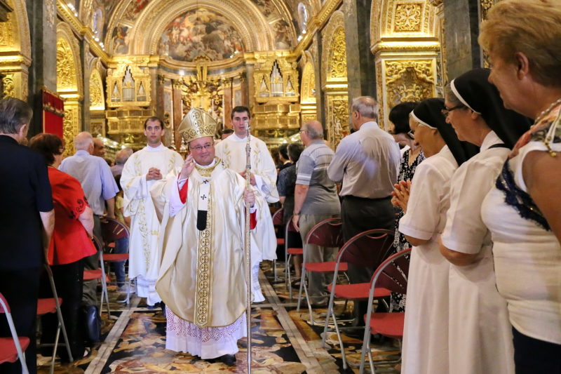 11/07/2015- Is-Sibt 11 ta’ Lulju 2015, l-Arċisqof Charles J. Scicluna ġie mlibbes il-pallium min-Nunzju Appostoliku l-ġdid, l-E.T. Mons. Mario Roberto Cassari, waqt Quddiesa Pontifikali fil-Konkatidral ta’ San Ġwann, il-Belt Valletta. Il-Quddiesa li bdiet fl-10.00 a.m. attendew għaliha diversi mistiedna, fosthom l-ogħla awtoritajiet tal-Istat, membri tal-Korp Diplomatiku, il-Kleru Djoċesan u l-membri tal-Ordinijiet Reliġjużi, Kappillani u rappreżentanti tal-parroċċi. Din hija l-ewwel darba li Arċisqof ġie mlibbes il-pallium waqt Quddiesa fl-Arċidjoċesi ta’ Malta stess…