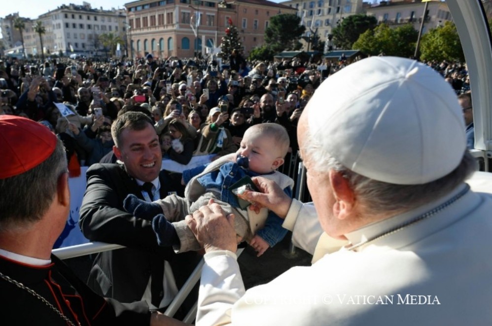 At 9 am, the papal plane landed at Ajaccio’s “Napoléon Bonaparte” Airport, where the Pope was enthusiastically received by local religious and civic officials, including Archbishop Celestino Migliore, the Apostolic Nuncio in France.