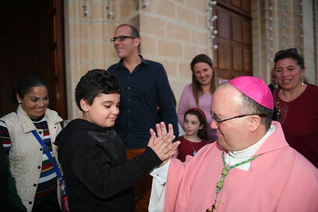 L-Arċisqof jiċċelebra Quddiesa mat-tfal, matul il-Viżta Pastorali fil-Parroċċa ta' San Sebastjan, Ħal Qormi