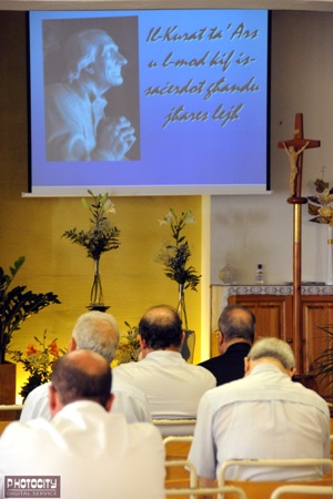 On Wednesday, 4th August, 2010, Archbishop Paul Cremona O.P. participated, together with the parish priests of Malta, in the celebration, held at Mtarfa, on the Feast of St. John Maria Vianney, Patron Saint of Parish Priests. This celebration, held annually, included a presentation on the life of the Saint, time dedicated to reflection and adoration of the Blessed Sacrament. Three lay persons involved in parish work exchanged experiences.