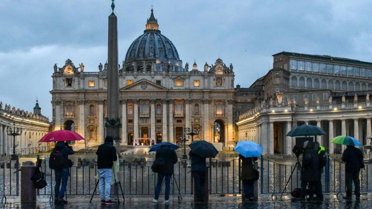 Journalists reporting outside the Vatican (Vatican News)