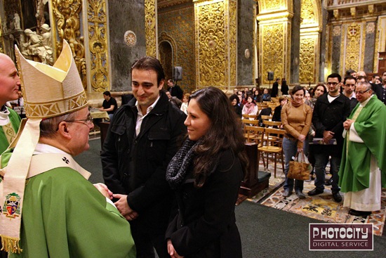 On Saturday 14th January 2012, Archbishop Paul Cremona O.P. celebrated mass at St John’s Co-Cathedral, Valletta, for those couples who got married during 2011.