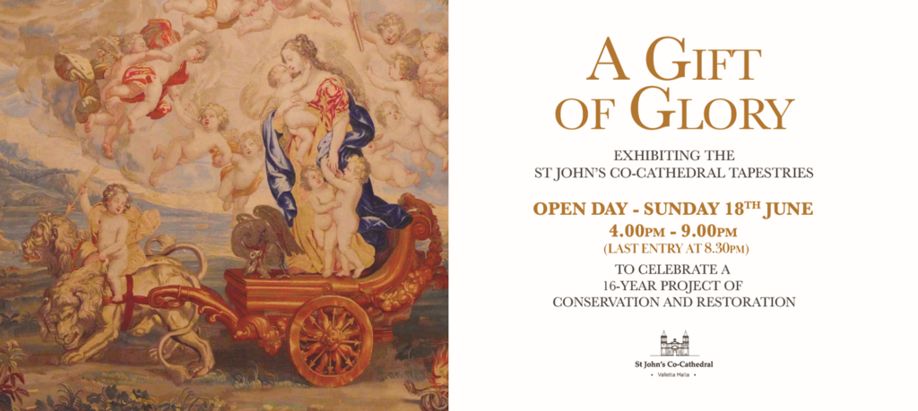 The St John’s Co-Cathedral Foundation announced that the Exhibition of the Tapestries ‘A Gift of Glory’ has been extended until Saturday 1 July 2023. The visitor opening hours are Monday to Saturday between 09:00 hrs to 16:45 hrs (last entry 16:15 hrs).
