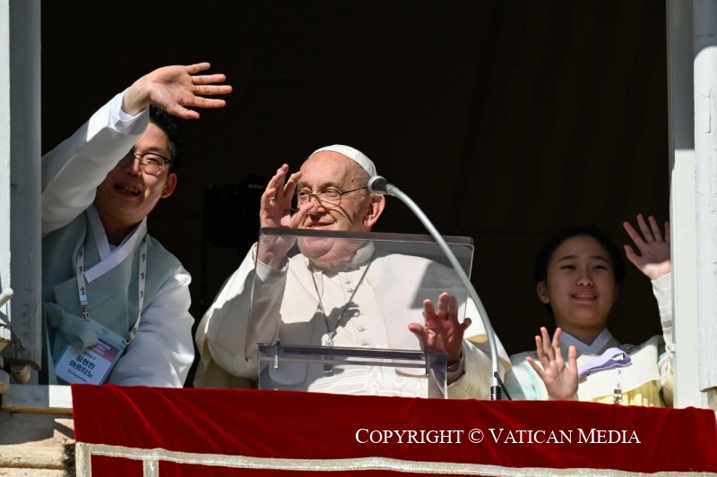 Today the 39th World Youth Day is being celebrated in specific Churches, with the theme: “They that hope in the Lord will walk and not grow faint” (cf. Is 40:31). Even young people get tired at times, if they do not hope in the Lord! I greet the delegations from Portugal and South Korea, who “passed on the torch” of preparations, for the WYD in Seoul in 2027. A round of applause for the two delegations.