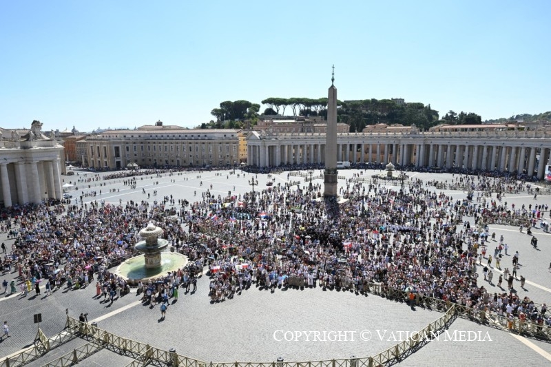 I greet all of you, Romans and pilgrims from Italy and from many countries. In particular, I greet the new seminarians of the North American College and wish them a good formative journey; and I also wish them to live their priesthood with joy, because true prayer gives us joy. I greet the young people with motor and cognitive disabilities, who are taking part in the “relay of inclusion” to affirm that barriers can be overcome. I greet my friends, the young people of the Immaculata.