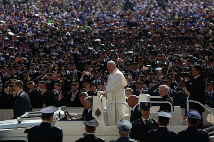 Pope Francis on Saturday held an extraordinary Jubilee Audience in St. Peter’s Square for thousands of eager pilgrims. The Audience also celebrated the Jubilee for members of the police and armed forces.The Holy Father focused in his catechesis on a very important point of mercy: reconciliation, taking the apostle St. Paul’s words in the second letter to the Corinthians 5:20-21 as his guide: “So we are ambassadors for Christ, as if God were appealing through us. We implore you on behalf of Christ, be reconciled to God. For our sake he made him to be sin who did not know sin, so that we might become the righteousness of God in him.”Pope Francis said St. Paul’s words ‘be reconciled to God’ are an invitation for all Christians, especially in this Jubilee Year of Mercy. He said God constantly offers us his forgiveness, and our sins can never keep us from God’s mercy.“Often we believe our sins push God away from us: in reality, by sinning we push ourselves away from Him, but He, seeing us in danger, keeps searching for us. God never accepts the possibility that someone could remain estranged from His love, as long as He finds in that person some sign of contrition for the evil committed.”The Holy Father went on to say that, in our sinfulness, we can only return to God by freely accepting his grace. For this, he has given us his Son Jesus, whose cross is a bridge leading us back to the Father.“The sinner sees only himself and thus pretends to be self-sufficient; for this reason, sin distances us ever more from God, and this can become a barrier. However, Jesus comes to look for us like a good shepherd who is not content until he has not found the lost sheep (cf. Luke 15:4-6). He rebuilds the bridge which connects us to the Father and allows us to rediscover our dignity as sons and daughters. With the offer of his life, he has reconciled us to the Father and given us the gift of eternal life (cf. John 10:15). ‘Be reconciled to God!”Reconciliation brings peace and contributes to societyHe said this Holy Year of Mercy is a time for each of us to accept this offer of reconciliation and, in our communities, to bring it to the world around us. Being reconciled with God not only brings inner healing and peace, but also impels us to work for reconciliation within society at every level, and thus contribute to the building of a global culture of peace, justice and solidarity.“Let us accept, therefore, the invitation to be reconciled to God to become new creatures and to be able to radiate His mercy among our brothers and sisters.”After the audience Pope Francis offered a special welcome to the members of the armed forces and police from throughout the world, especially those present at the audience from Canada, Kenya, Korea, the Philippines, and the United States of America.Source: Vatican Radio