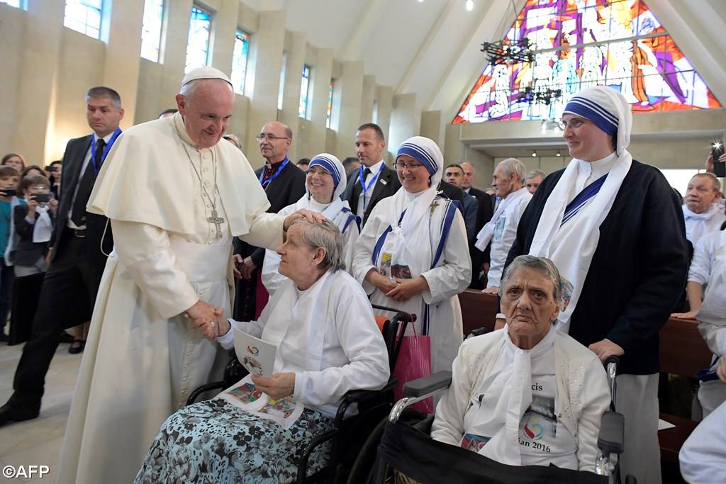 May we be aided by the intercession of the Immaculate Virgin Mary and by the saints, especially Saint Teresa of Calcutta, the fruits of whose faith and service are in your midst. Let us recall some of her noble words to summarize today’s message: “The fruit of faith is love. The fruit of love is service. The fruit of service is peace” (A Simple Path, Introduction).