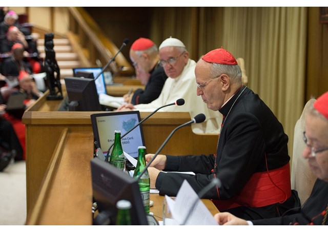 Following the announcement the General Rapporteur, Cardinal Peter Erdő, presented the mid-term report outlining the main questions highlighted over the past week of General Congregations which will now be examined in by the bishops, fraternal delegates, auditors and experts in the ‘minor circles’ or small working groups.