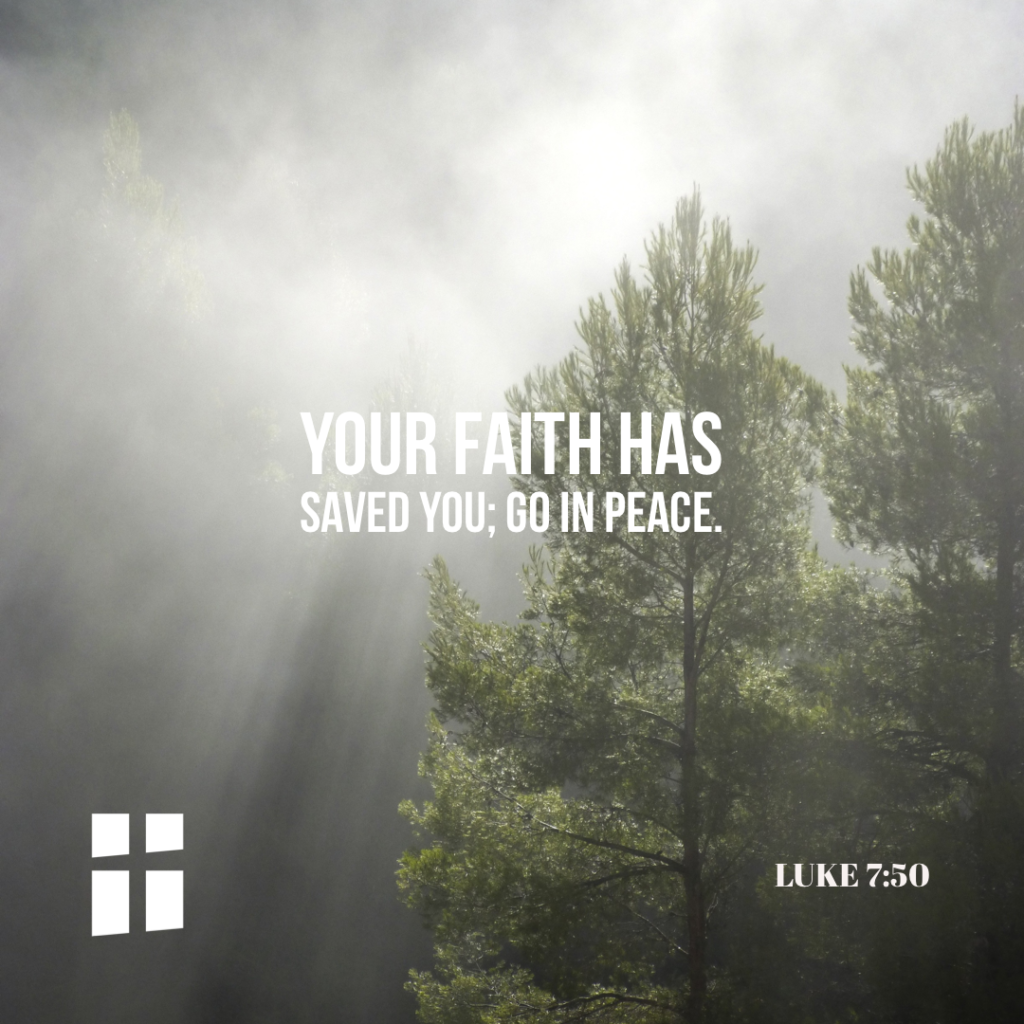 He said to her, “Your sins are forgiven.” The others at table said to themselves, “Who is this who even forgives sins?” But he said to the woman, “Your faith has saved you; go in peace.”
