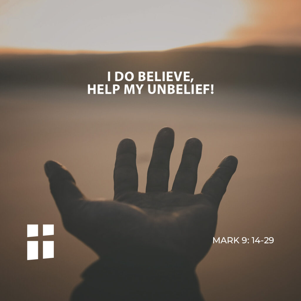 He said to them in reply, “O faithless generation, how long will I be with you? How long will I endure you? Bring him to me.” They brought the boy to him. And when he saw him, the spirit immediately threw the boy into convulsions. As he fell to the ground, he began to roll around and foam at the mouth. Then he questioned his father, “How long has this been happening to him?” He replied, “Since childhood. It has often thrown him into fire and into water to kill him. But if you can do anything, have compassion on us and help us.” Jesus said to him, ” ‘If you can!’ Everything is possible to one who has faith.” Then the boy’s father cried out, “I do believe, help my unbelief!”