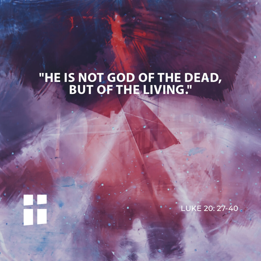 Jesus said to them, “Those who belong to this age marry and are given in marriage; but those who are considered worthy of a place in that age and in the resurrection from the dead neither marry nor are given in marriage. Indeed they cannot die anymore, because they are like angels and are children of God, being children of the resurrection. And the fact that the dead are raised Moses himself showed, in the story about the bush, where he speaks of the Lord as the God of Abraham, the God of Isaac, and the God of Jacob. Now he is God not of the dead, but of the living; for to him all of them are alive.”