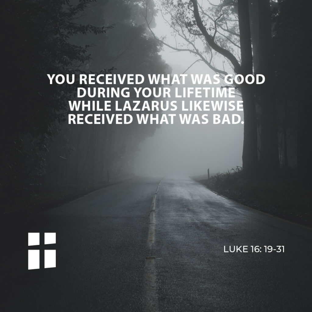 Abraham replied, ‘My child, remember that you received what was good during your lifetime while Lazarus likewise received what was bad; but now he is comforted here, whereas you are tormented. Moreover, between us and you a great chasm is established to prevent anyone from crossing who might wish to go from our side to yours or from your side to ours.’