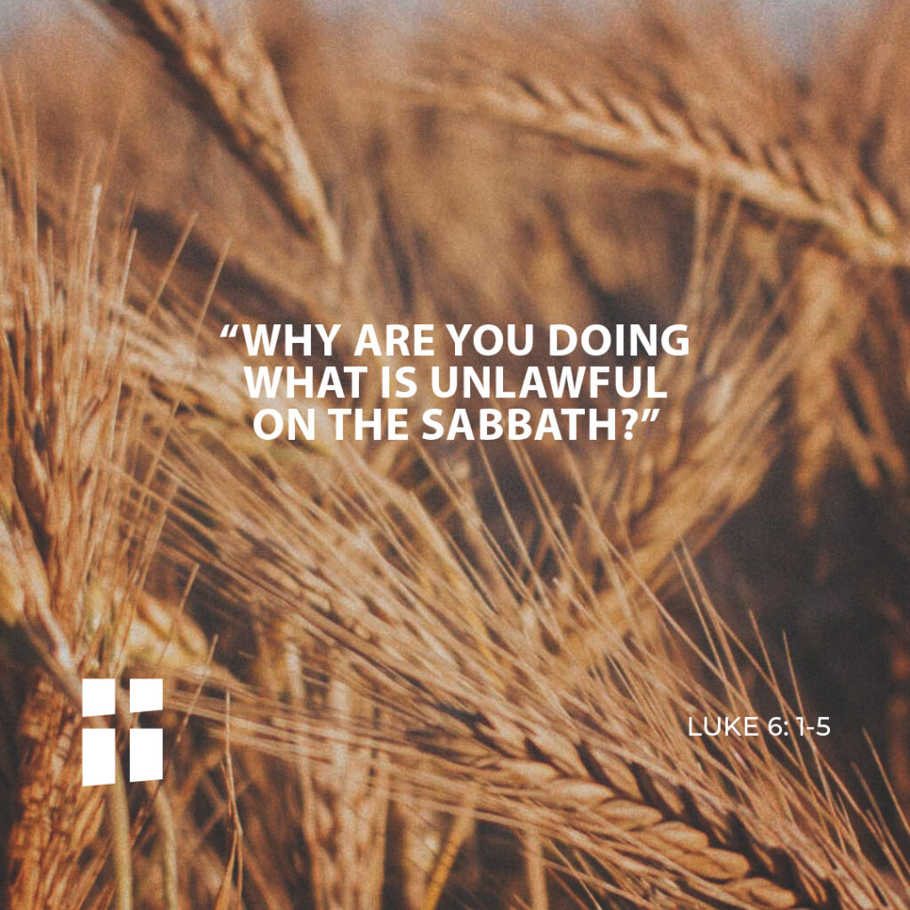 One sabbath while Jesus was going through the grainfields, his disciples plucked some heads of grain, rubbed them in their hands, and ate them. But some of the Pharisees said, “Why are you doing what is not lawful on the sabbath?”