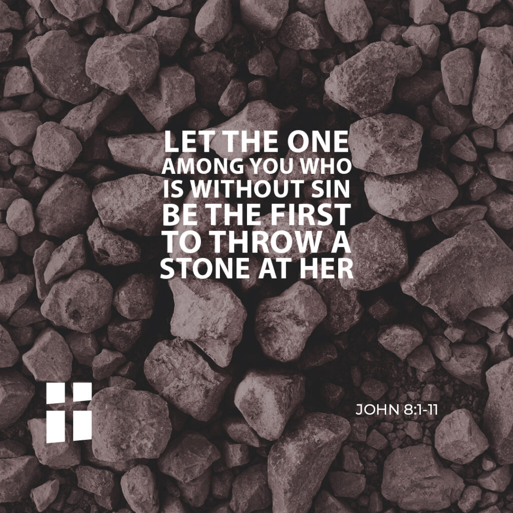 Jesus bent down and began to write on the ground with his finger. But when they continued asking him, he straightened up and said to them, “Let the one among you who is without sin be the first to throw a stone at her.” Again he bent down and wrote on the ground. And in response, they went away one by one, beginning with the elders.
