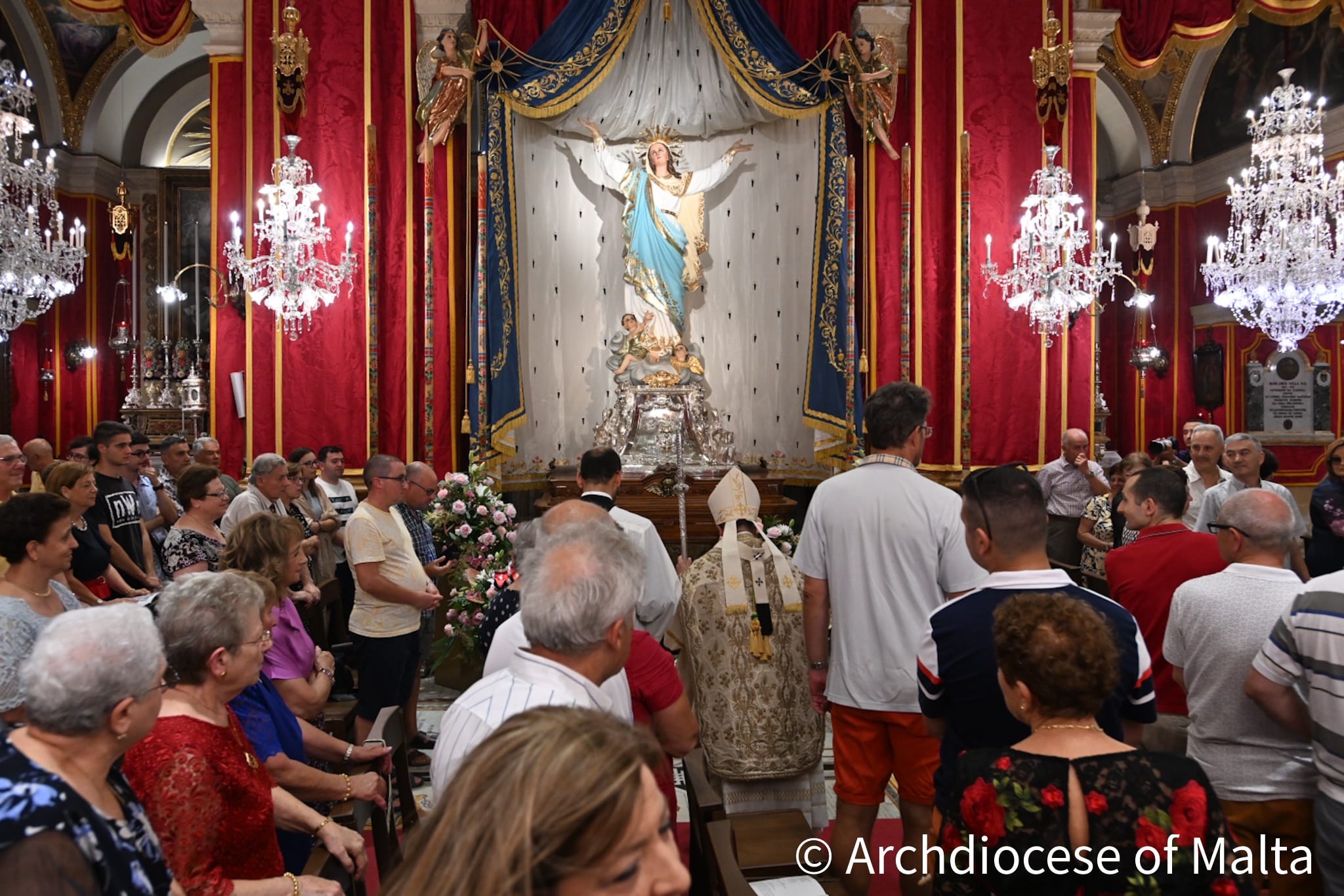 Ejjew nitolbu li s-sagrifiċċju tal-Quddiesa, li ilu jiġi ċċelebrat f’dan il-post għal mijiet ta’ snin, jibqa’ jfakkarna fil-vokazzjoni tagħna, li ningħataw lil xulxin, li nkunu bla tebgħa quddiemu fl-imħabba, bħalma kienet Ommu Marija. Aħna u nitolbu l-interċessjoni tal-Madonna fuq il-Kapitlu tal-Katidral, fuq il-gżira Għawdxija, fuq din id-Djoċesi għażiża, nitolbu wkoll il-barka ta’ Sidtna Marija fuq il-gżejjer Maltin. Bħalma qal Mons. Arċipriet fl-innu sabiħ li ssellmu lill-Madonna bħala l-Patruna tal-gżejjer Maltin, u jixhdu fil-fatt li fil-gżejjer Maltin għandna densità inkredibbli ta’ knejjes u kappelli kbar u żgħar iddedikati lill-Assunta. Hija devozzjoni antikissima fil-gżejjer Maltin. Hija xhieda tal-fidi tal-poplu ta’ Alla li, meta jħares lejn l-Omm, jara fiha dik il-kewkba li tiddi fid-dlam tal-ħajja, dik l-iStella Maris, dik il-Kewkba, li meta l-maltemp iħabbat, jagħtina kedda, inħarsu lejha, u nsibu t-triq. Ejjew nitolbu bl-interċessjoni ta’ Marija biex kull minn għaddej minn xi diffikultà fil-ħajja, iħares lejha u jiftakar fil-kelma tagħha: Hawn jien il-qaddejja/il-qaddej tal-Mulej: ħa jsir minni skont kelmtek!